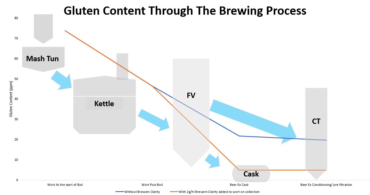 In partnership with Brampton Brewery, a recent Murphy and Son Survey (fig 1) established that a correct boil with optimised copper finings dropped will drop gluten content of the beer by as much as 30%.
