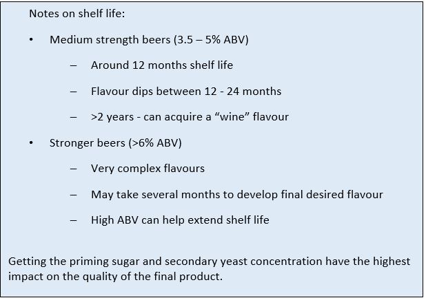 Unlike filtered or pasteurised smallpack products, bottle conditioned beers contain a small amount of yeast which consumes sugars and residual oxygen to give carbonation and flavour development.